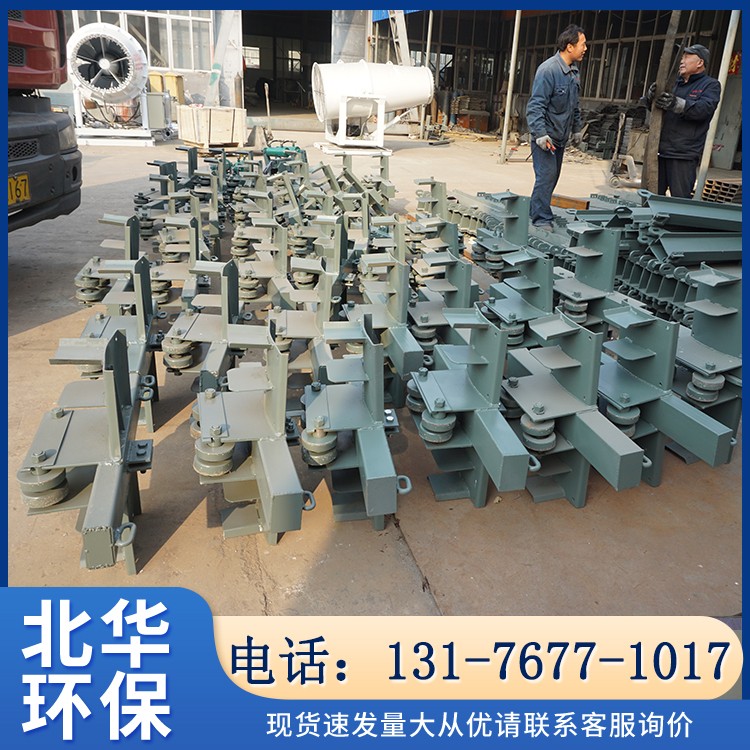 軌道由圓環(huán)鏈吊掛在巷道頂板上,軌道之間用鉸接螺栓連接,連接小車與各掛纜小車及尾部分纜小車的圓環(huán)鏈用于電動(dòng)絞車將形成撓度的電纜拖直,推進(jìn)缸用于推動(dòng)掛纜小車,使掛纜小車上的電纜形成撓度,以便回收。止退小車的作用是在上坡段當(dāng)制動(dòng)器出現(xiàn)故障時(shí),阻止形成撓度的掛纜小車向后下滑。