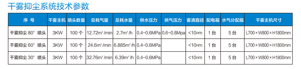 除塵原理:干霧抑塵的原理是將水和高壓氣體混合,在其相互碰撞下產(chǎn)生“爆炸” 形成千萬個直徑只有1-10微米大小水霧顆粒, 壓縮氣流通過噴頭共振室將水霧顆粒以柔軟低速的霧狀方式噴射到粉塵發(fā)生點,由于多次組合,粉塵凝結(jié)而墜落,達(dá)到降塵的效果。